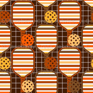 Preppy Pickleball Paddles and Balls in Warm Tones on Dark Brown
