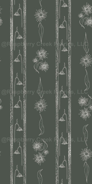 Vintage Pressed Daisies Stripe - forrest green