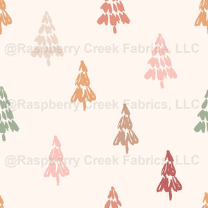 Sweet Christmas Trees. Pink, orange, light brown, green trees on neutral background.