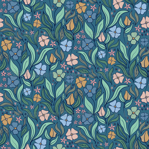 Pretty Meadow Floral Flowers in Blue, Yellow, and Green