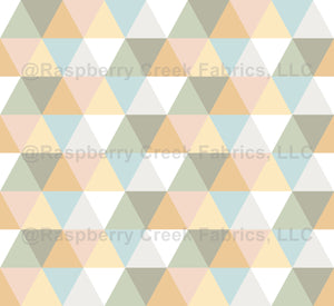 Prisma effect triangles and diamond geometric abstract shapes in pale orange, green, gray, blue, white colors. Modern, minimalistic