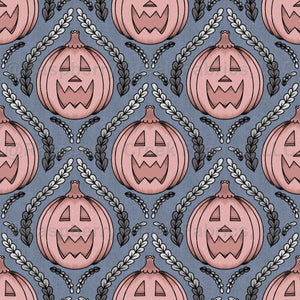 The mini edition to the original seamless pattern design by Bonny Shatwell. A beautiful personally textured background embedded with mischievous pumpkins, drawn digitally by hand, showing the hand drawn effect through digital art.