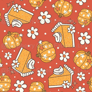 Pumpkin Pie and Daisies on Rustic Red