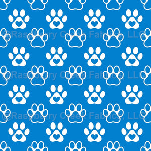 Puppy Dog Paw Prints on Blue