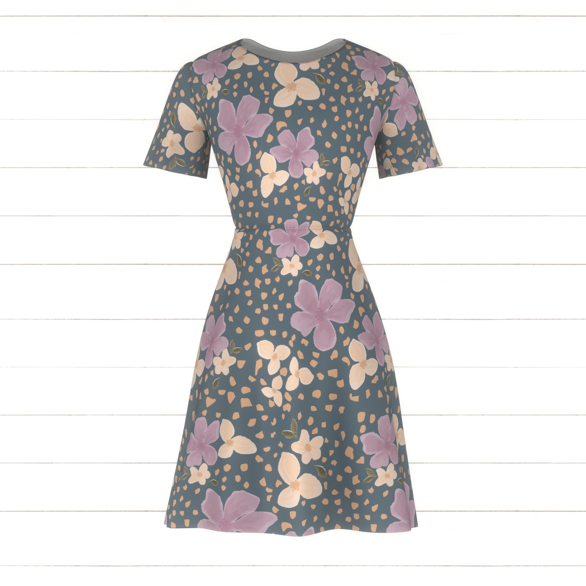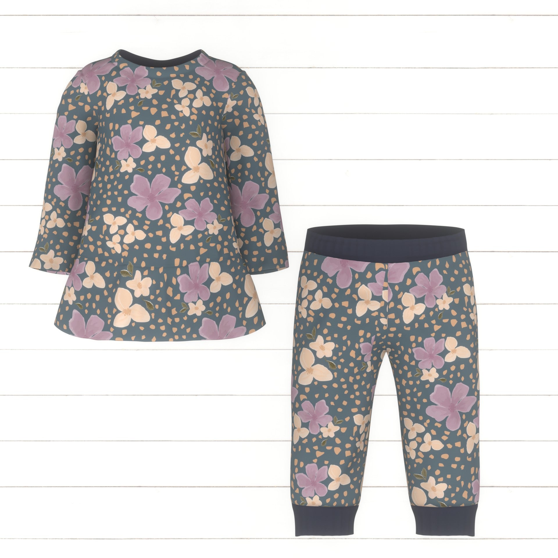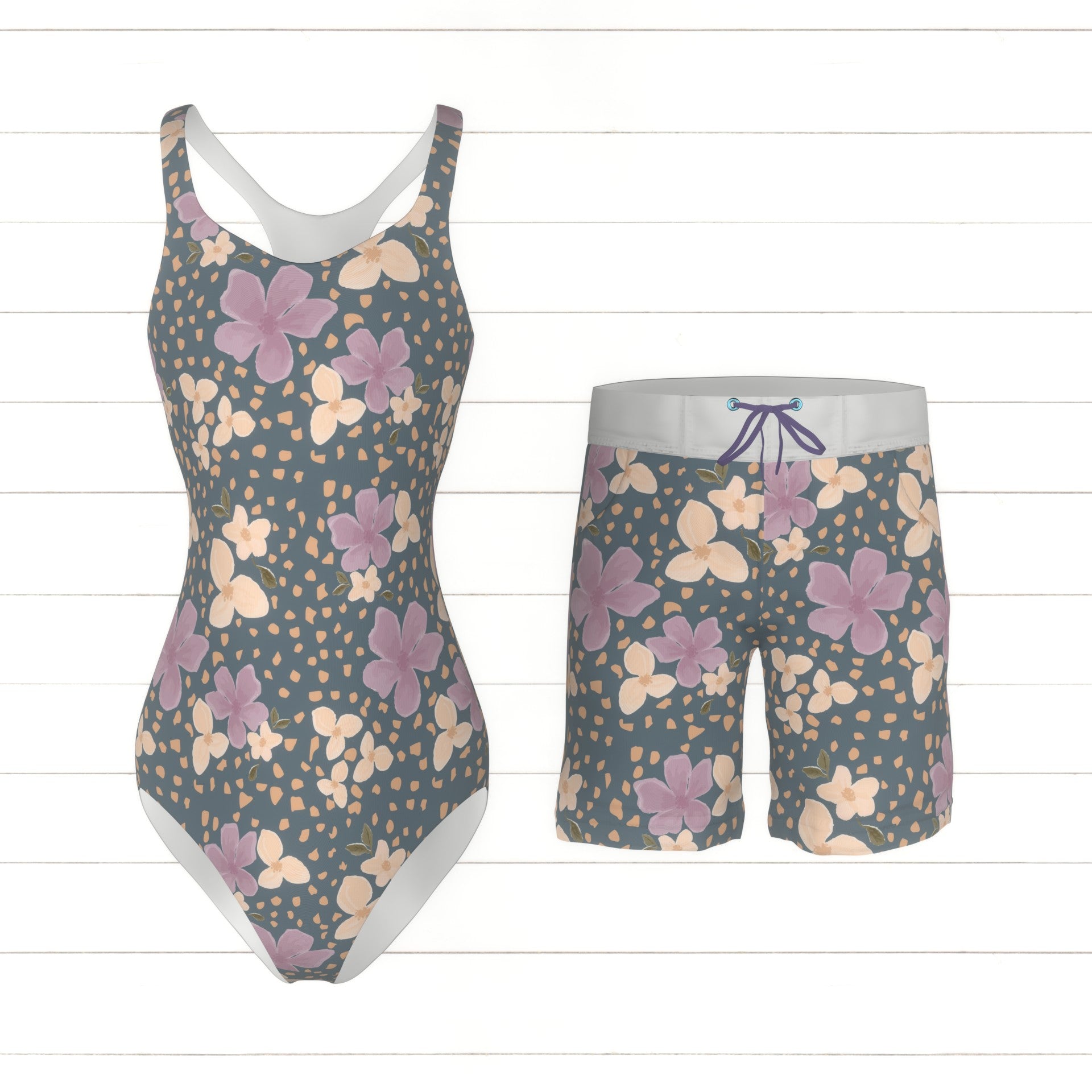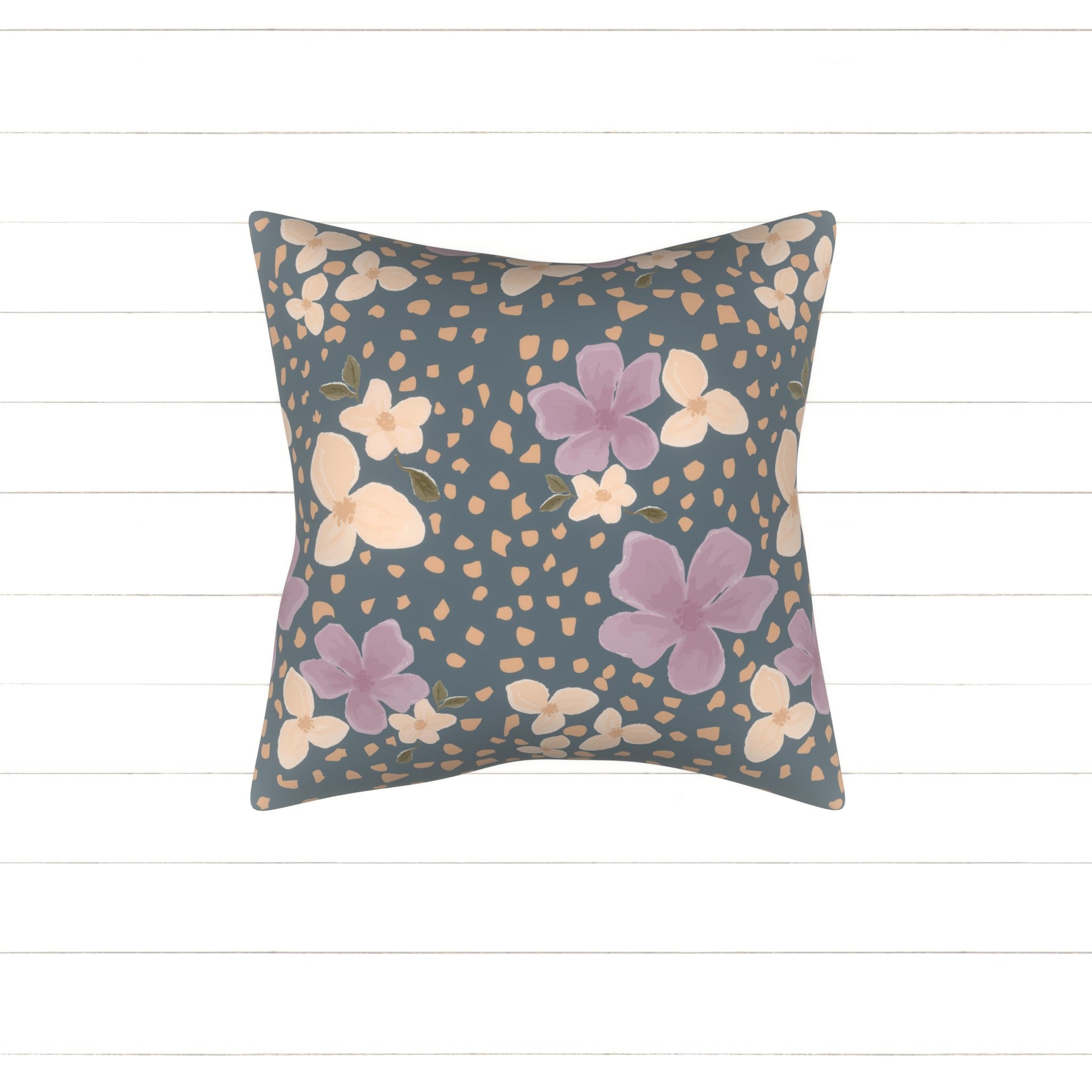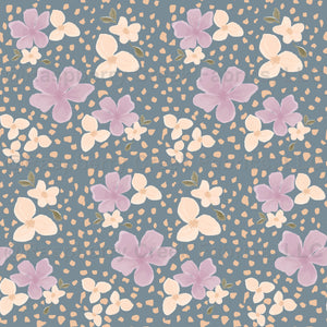 Purple and orange watercolor wildflowers surrounded but orange rocks on a vintage blue color background.