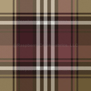 Purplish Red and Gold Twill Plaid with Brown and White Stripes