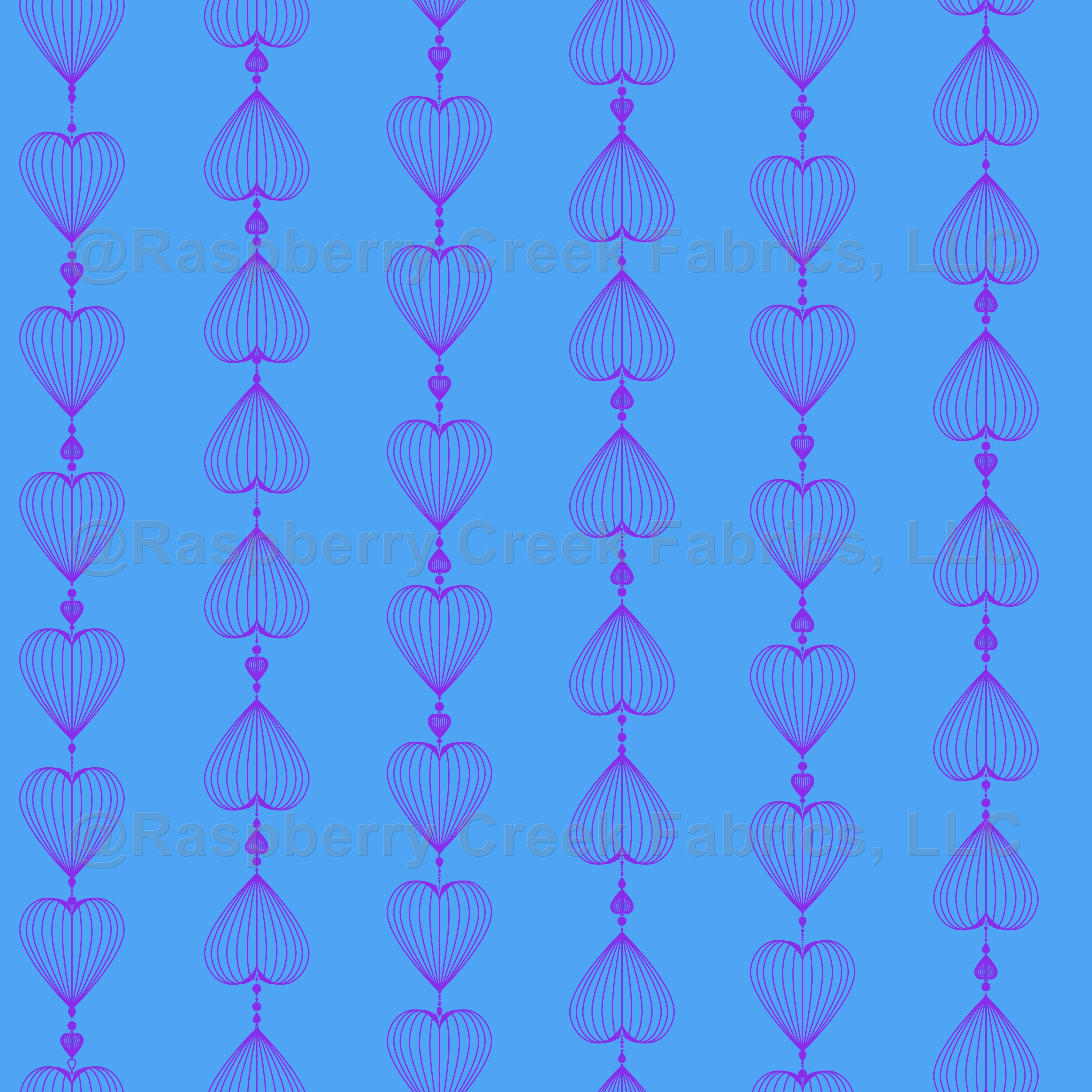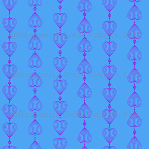 A cage heart in lines like beads, this steampunk inspired motif is brilliantly done in purple and blue. Great for quilting or apparel.