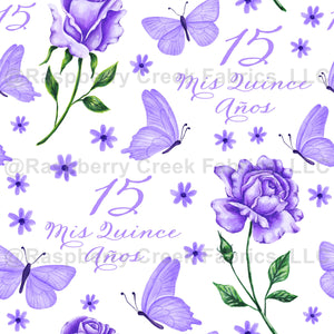 Quinceanera 15th Birthday Lilac Purple Roses and Butterflies on White