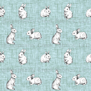 Rabbit Sketches on Green Crosshatch