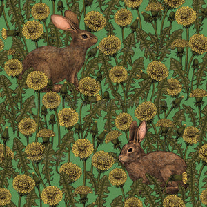 Hand painted rabbits on dandelion meadow