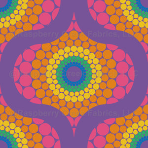 Retro vibes in our abstract floral Radiant dot mandala in a mid century modern ogee pattern using colors from our Maximalist Rainbow palette.