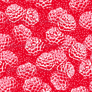 Bright red and pink raspberry design. Playful, fun and colorful.
