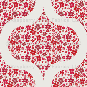 A touch of mid-century modern elegance in a 1970s ogee pattern using our retro florals design in berry shades of red.