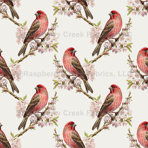 Elegant, stylish and sophisticated pattern with Tanager birds and cherry blossom flowers. Modern and trendy, perfect for the bird lover.