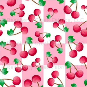 Red Cherries on Pink and White Checker