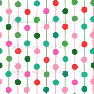 Red, green and pink dots vertical lines, stripes, cute Christmas abstract design