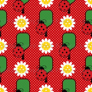 Red Ladybug Pickleballs and Paddles with White Daisy Flowers on Red Polkadots