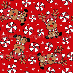 Red Nosed Reindeer and Peppermint Swirl Candies on Red