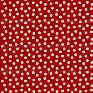 White translucent polka dots are scattered in nondirectional pattern on an icy faux textured red ground. Part of the Santa's Helpers Collection.