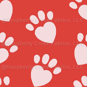 red tossed paw print love hearts