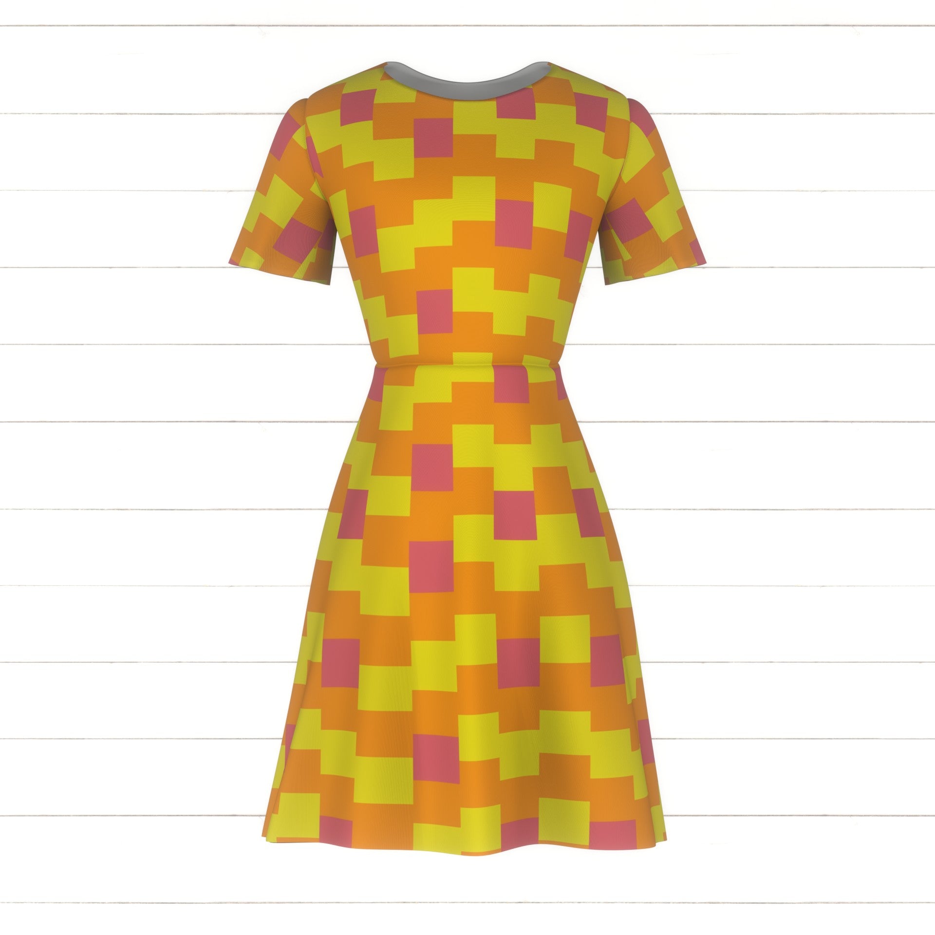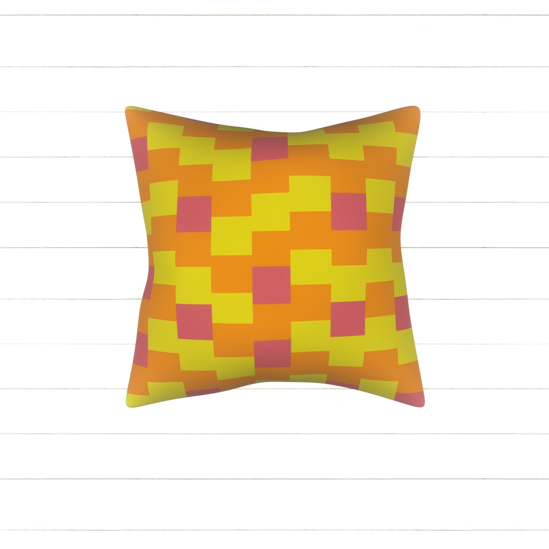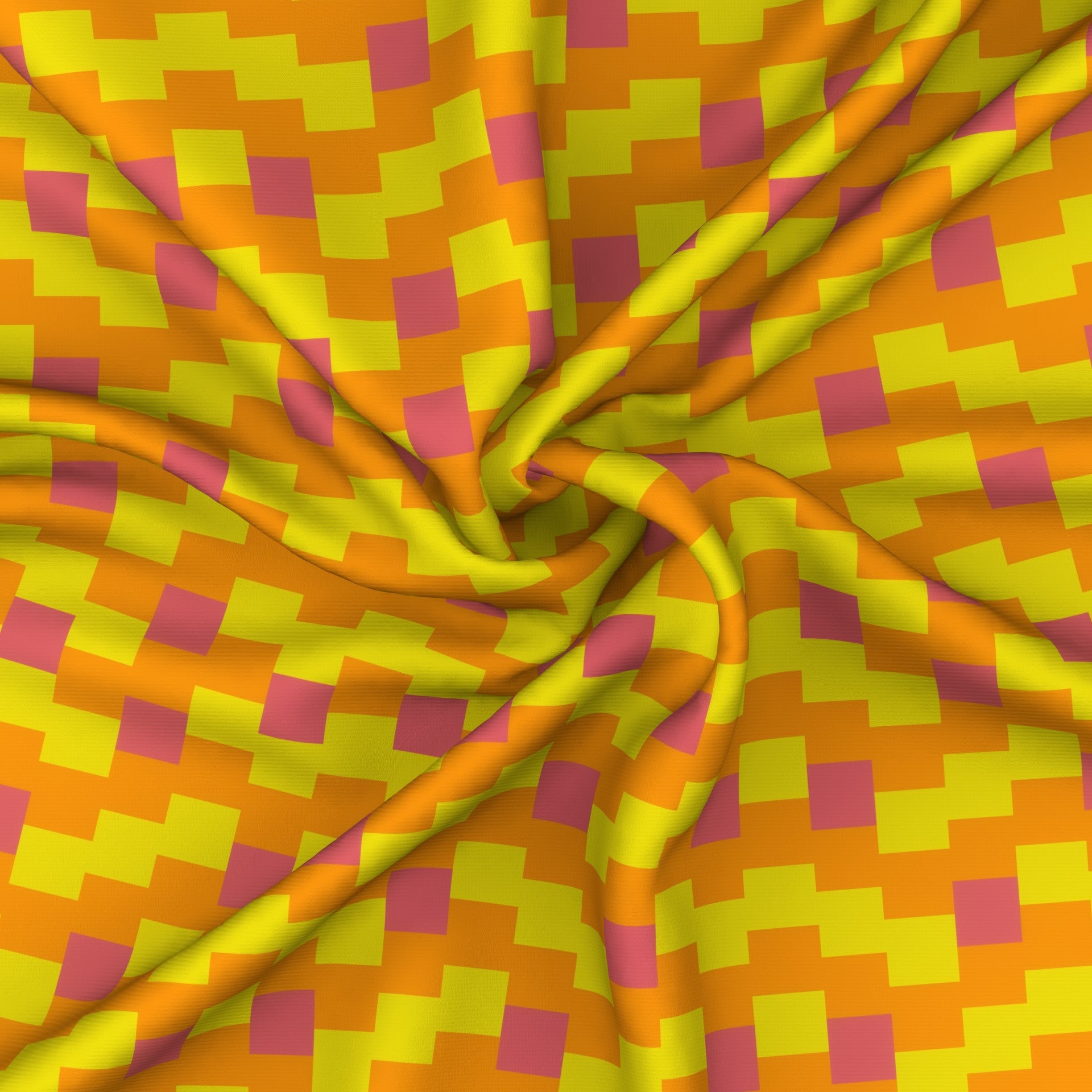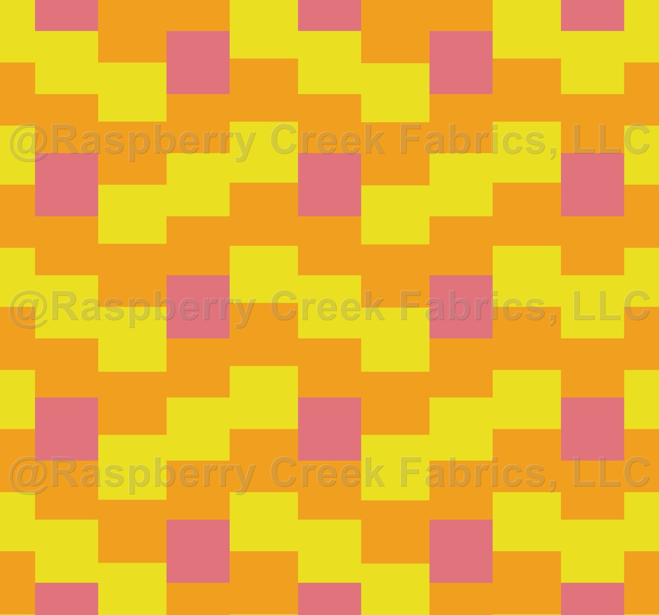 Fun geometric design of a pink, yellow, and orange reimagined, classic plaid pattern. This design exudes exuberant, happiness, and bright sunshine. Matches the Yellow Orange Green collection.
