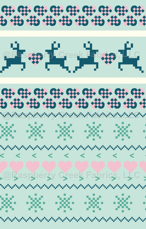 Reindeer Christmas Sweater in Dark Blue, Mint Green, and Pink