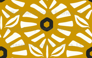 Vintage inspired bold geometric floral pattern with abstract flowers in mustard gold and white, perfect for mid century, retro home decor.