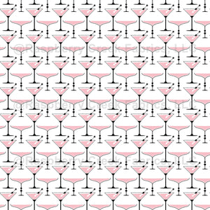 This fun retro-style martini drink pattern in classic black and pink adds a stylish, vintage flair to your creative projects.