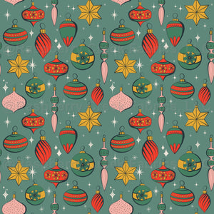 Retro Christmas Ornaments on Dark Green