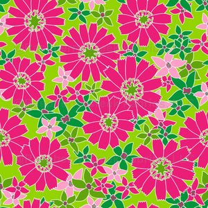 Fun and bright daisy floral with a retro feel. Pink and green color palette.