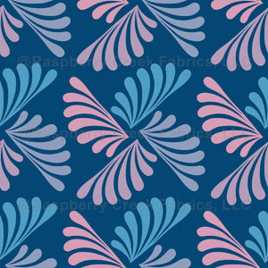 Retro Fanburst Geometric Floral Pattern Wallpaper on Blue SF0099