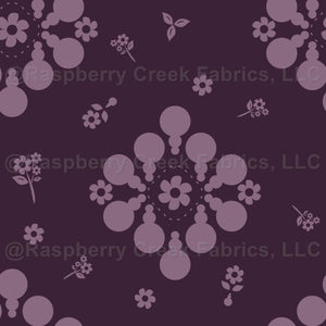 Retro Floral Pearl Drop Diamond Purple and Lavender, lavender geometric floral diamond on purple background with small scattered flowers and leaves