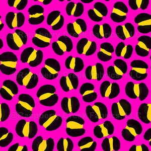 Hand drawn leopard spots on magenta pink background. Retro animal print in 80s colors.