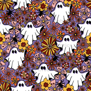 Retro Halloween purple, Retro, Halloween, ghost, Spider, spooky Season, outline Flowers, floral, orange, black, red, Yellow, Pink, White, Kids clothing, maximalist, floral
