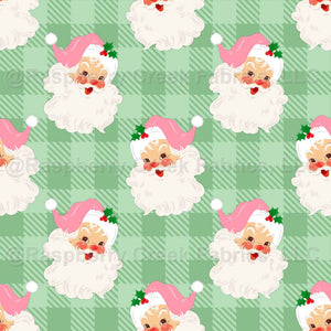 Retro Jolly Santa Pink Hats Mint Green Buffalo Plaid
