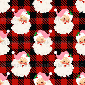 Retro Pink Santa on Red and Black Buffalo Plaid Checker