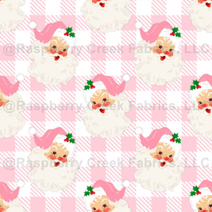 Retro Pink Santa on Soft Pink Buffalo Checker Plaid