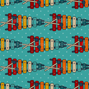 Retro Rainbow Xylophones on Turquoise