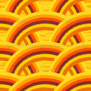 Abstract rainbows with brush stroke edges on a textured background. Done in retro orange, yellow, and brown.