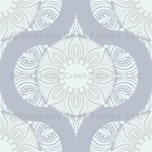 Retro vibes in our abstract floral Lace Tonal Tiers dot mandala in a mid century modern ogee pattern using colors from our Silver Smoke palette.