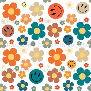 Retro Smiley Faces and Daisy Flowers