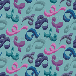 Half scale of the coordinating “ribbon” print – two tone ribbons tossed on a teal blue background.