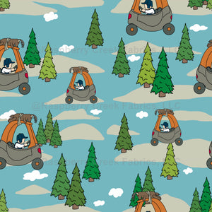 Robins Egg Blue Sand Green Taupe Little Kids Coupe With Deer In Forest