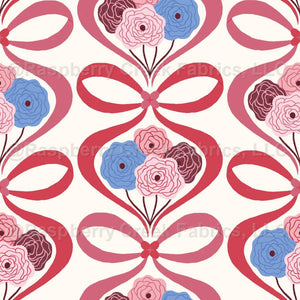Rose Flowers & Ribbon Bows (Floral White) Coquette Aesthetic Mauve Red Blue // Romantic Charm