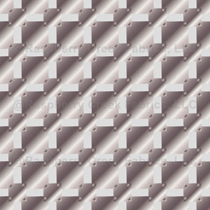 Rose silver on light grey riveted square metal plates in a gradient Industrial texture with metallic shine effect, for steampunk, modern décor, costumes, cosplay, quilting, unique fabric accents and projects.