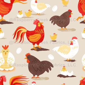 Rustic Country Chicken Egg Farm. Chickens, hens, chicks neutral colors animal pattern.