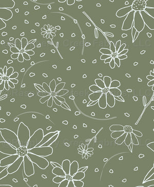 Delicate white daisy outlines dance across the sage green background in this playful and yet classy print. Perfect for children and adults alike, this print also comes in a sage colorway. Perfect color match coordinating stripes can be found here and here. Browse the rest of the Feeling Daisy & Free collection by Patternmint.
