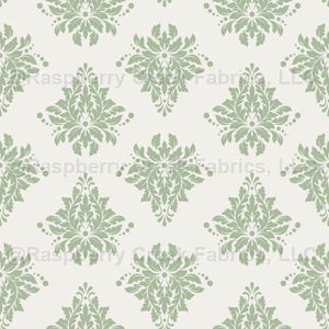 Sage Green Damask on Ivory