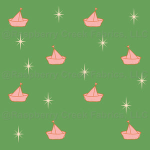 Sail boat and stars green