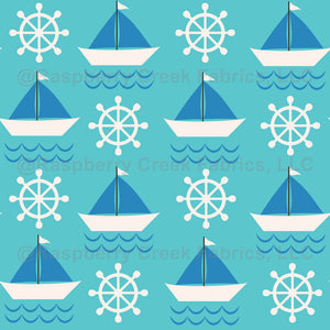 This is cute simple sailing boats with ship steering wheels on aqua blue background. see beach time collection for similar designs